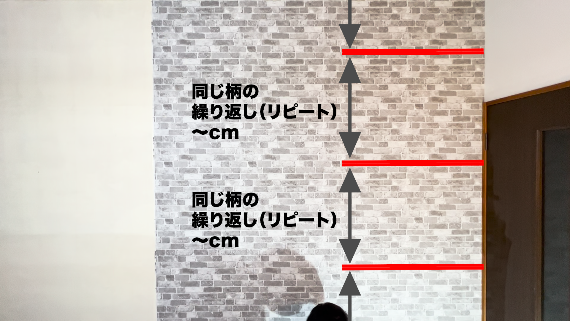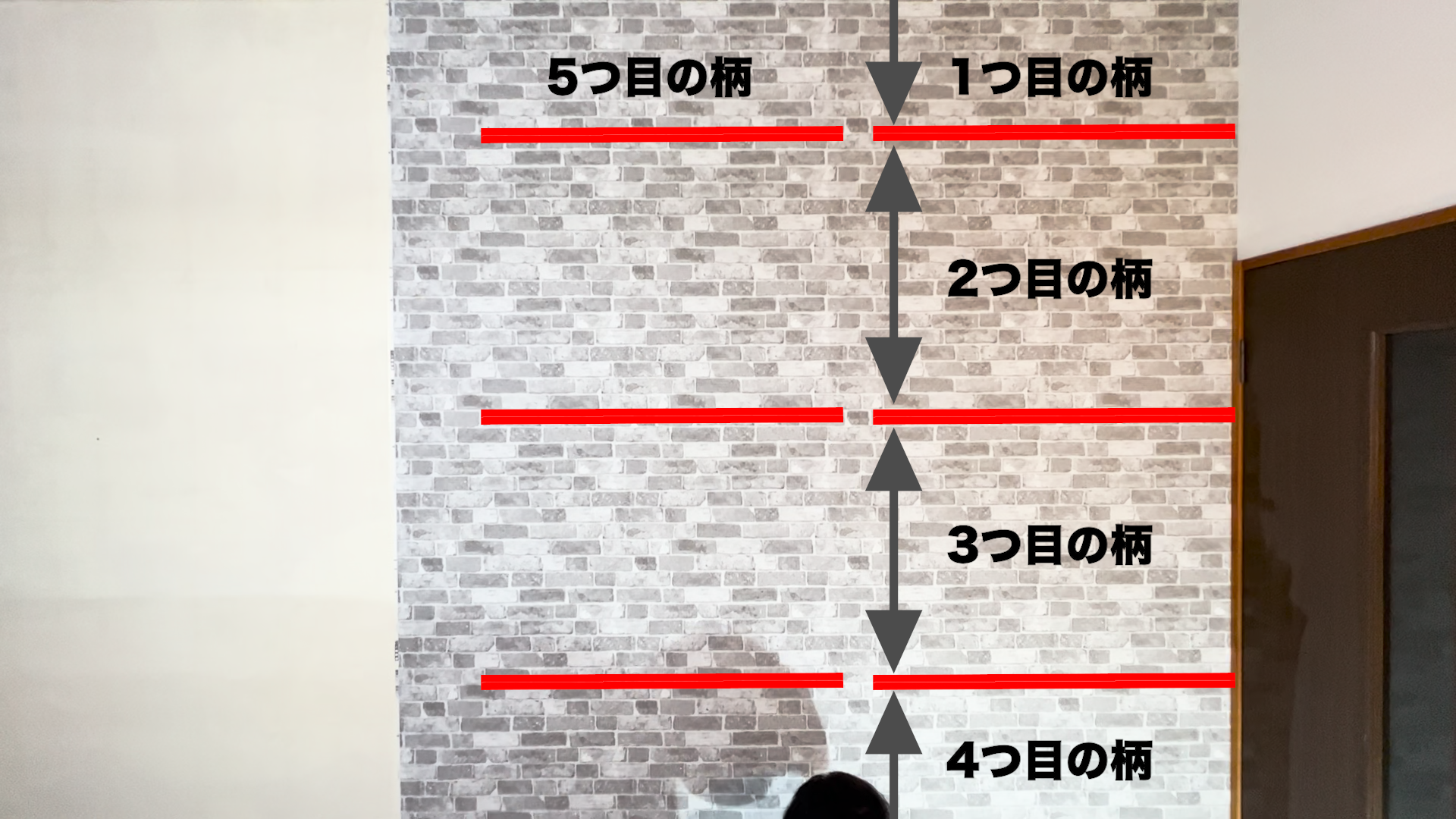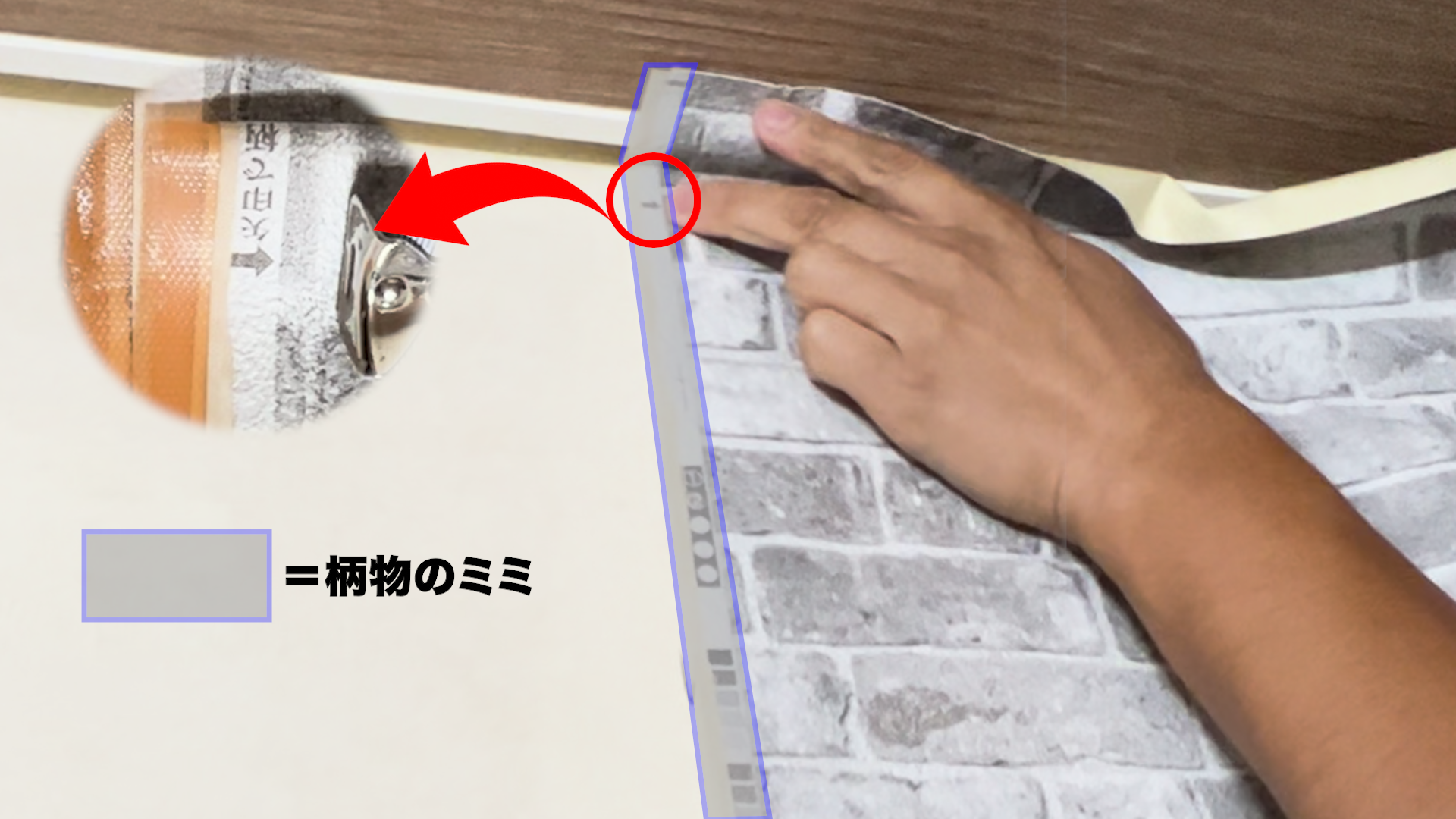 壁紙を裁断するときには、この➡︎マークが上に来るように裁断を行うと柄合わせが楽になります!
