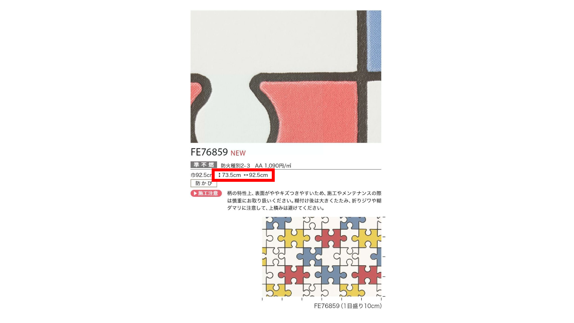 すべての柄のパターンは違っており、壁紙すべてリピートが変わります。見本帳の品番の下に縦リピートと横リピートが表示されています。