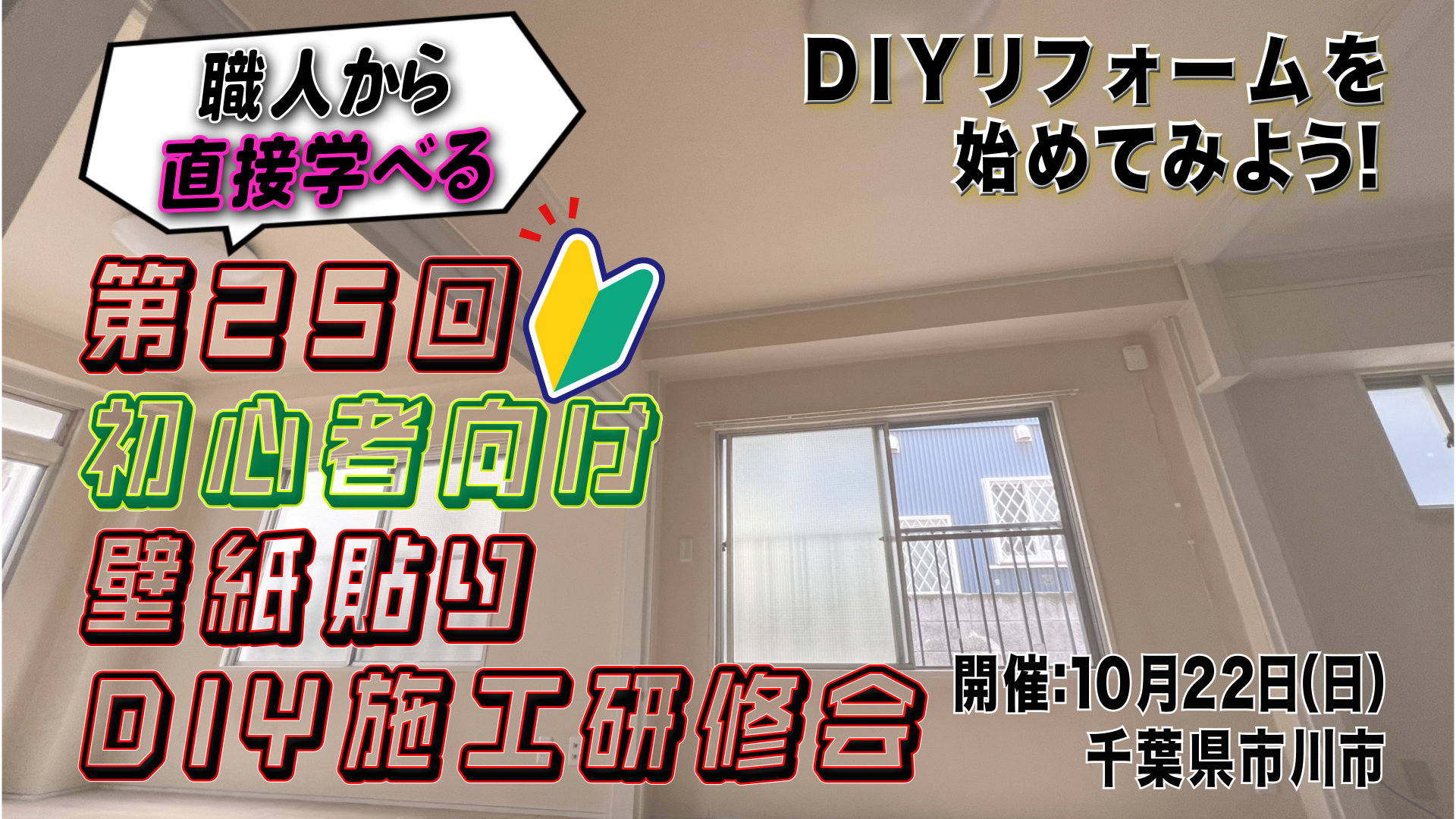 第25回は都心での壁紙貼りのDIY施工研修会! 今回の開催で25回目の施工研修会…